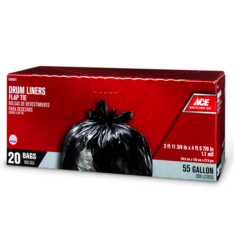 Ace 55 Gal Drum Liners Flap Tie 20 Pk 1.1 Mil