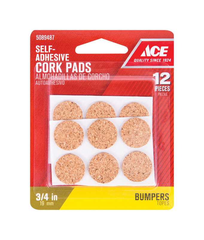 Ace Cork Self Adhesive Bumper Pad Brown Round 3/4 In. W 12 Pk