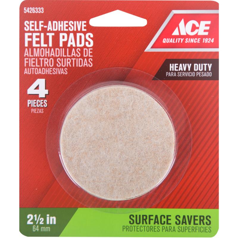 Ace Felt Self Adhesive Protective Pad Brown Round 2-1/2 In. W 4 Pk