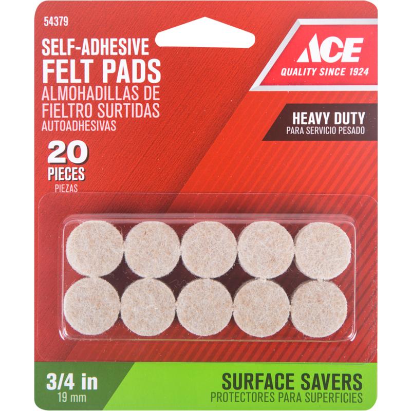 Ace Felt Self Adhesive Protective Pad Brown Round 3/4 In. W 20 Pk