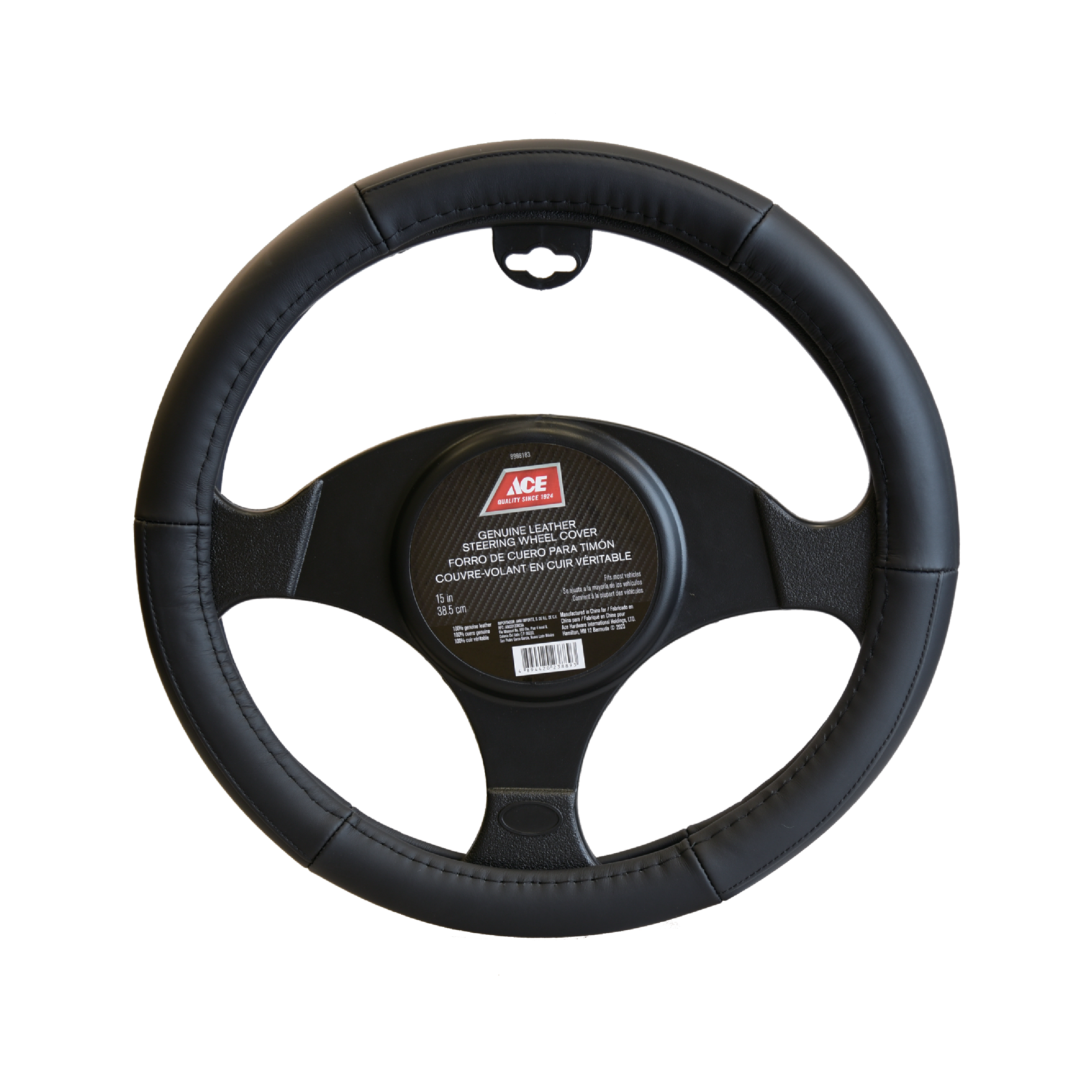 Ace Leather Steering Wheel Cover Black