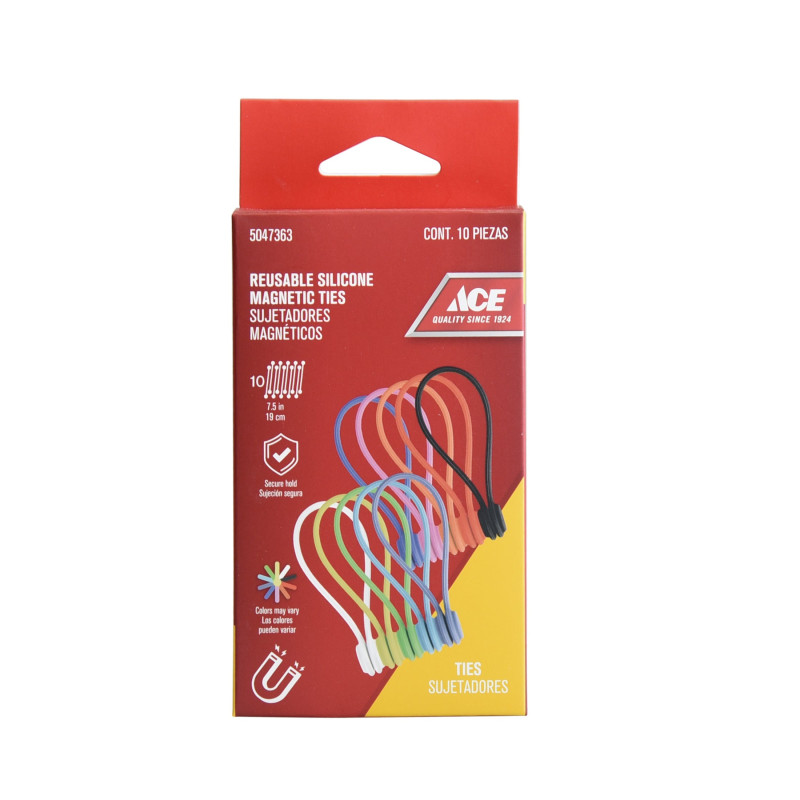 Ace Magnetic Silicone Ties 7.8In (20Cm) Assorted Colors 10 P