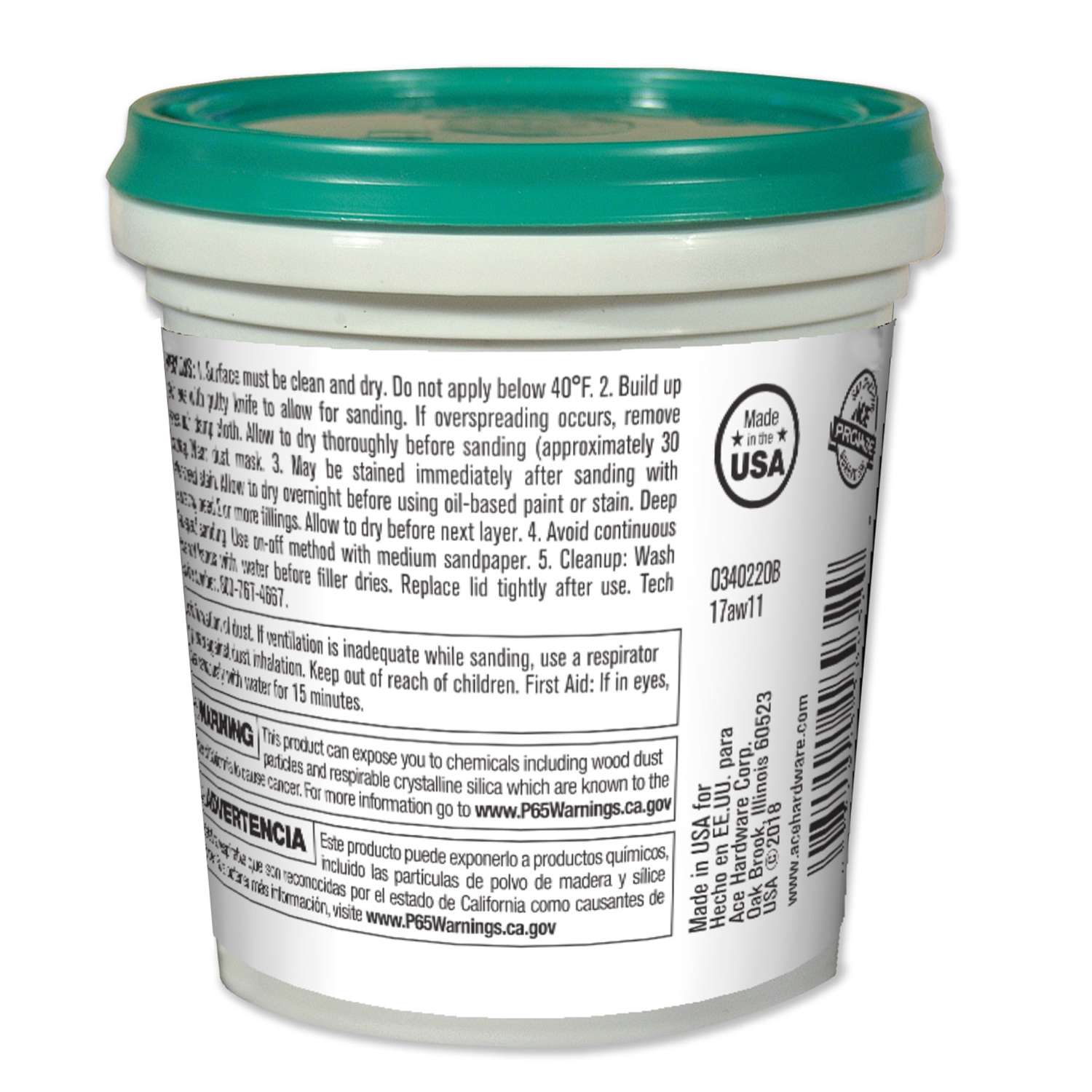 It Spreads Smoothly Into Cracks And Holes, Takes Stains And Paints Evenly And Resists Cracking. Perfect For Any Type Of Custom Wood Project.• Non Flammable And Free Of Harmful Solvent Fumes• Won'T Crack Or Shrink• Can Be Sanded, Drilled Or Planed• Easy Water Clean-Up• Interior/Exterior Use• Dries In 30 Mintues