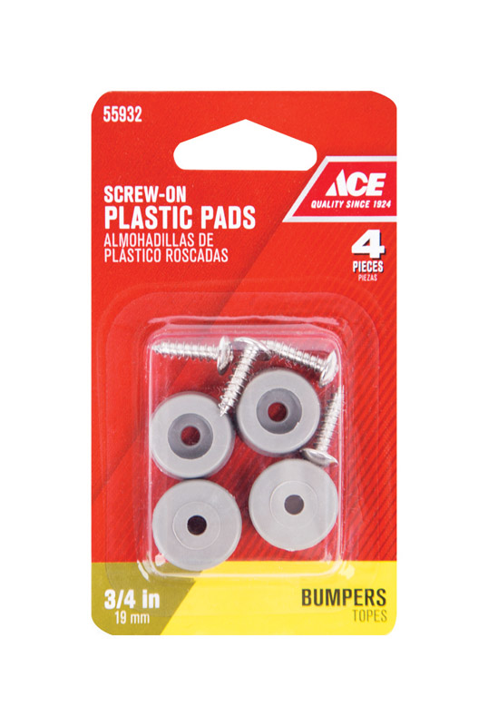 Ace Plastic Bumper Pad Gray Round 3/4 In. W 4 Pk