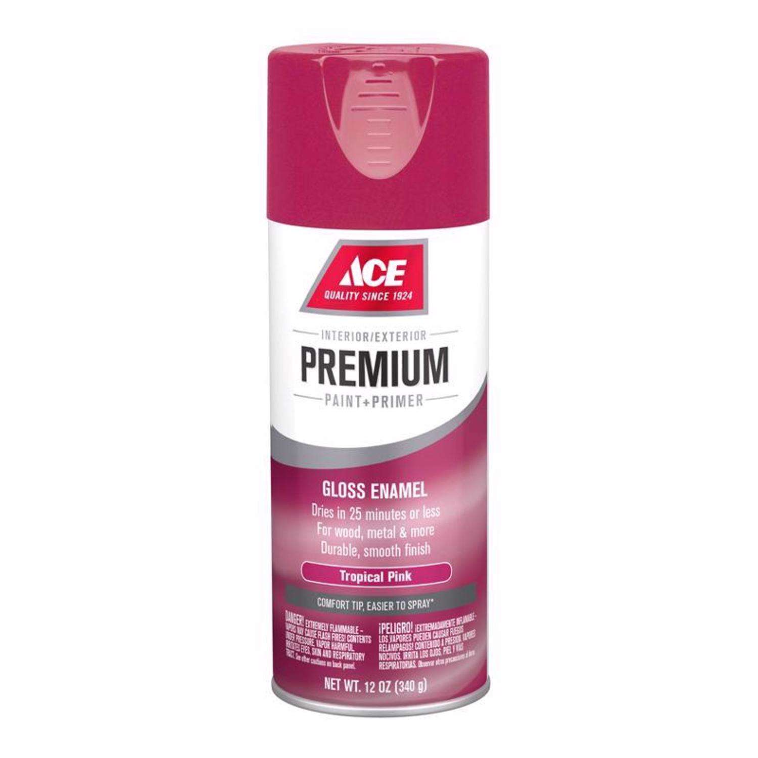 Ace Premium Gloss Tropical Pink Paint + Primer Enamel Spray 12 oz