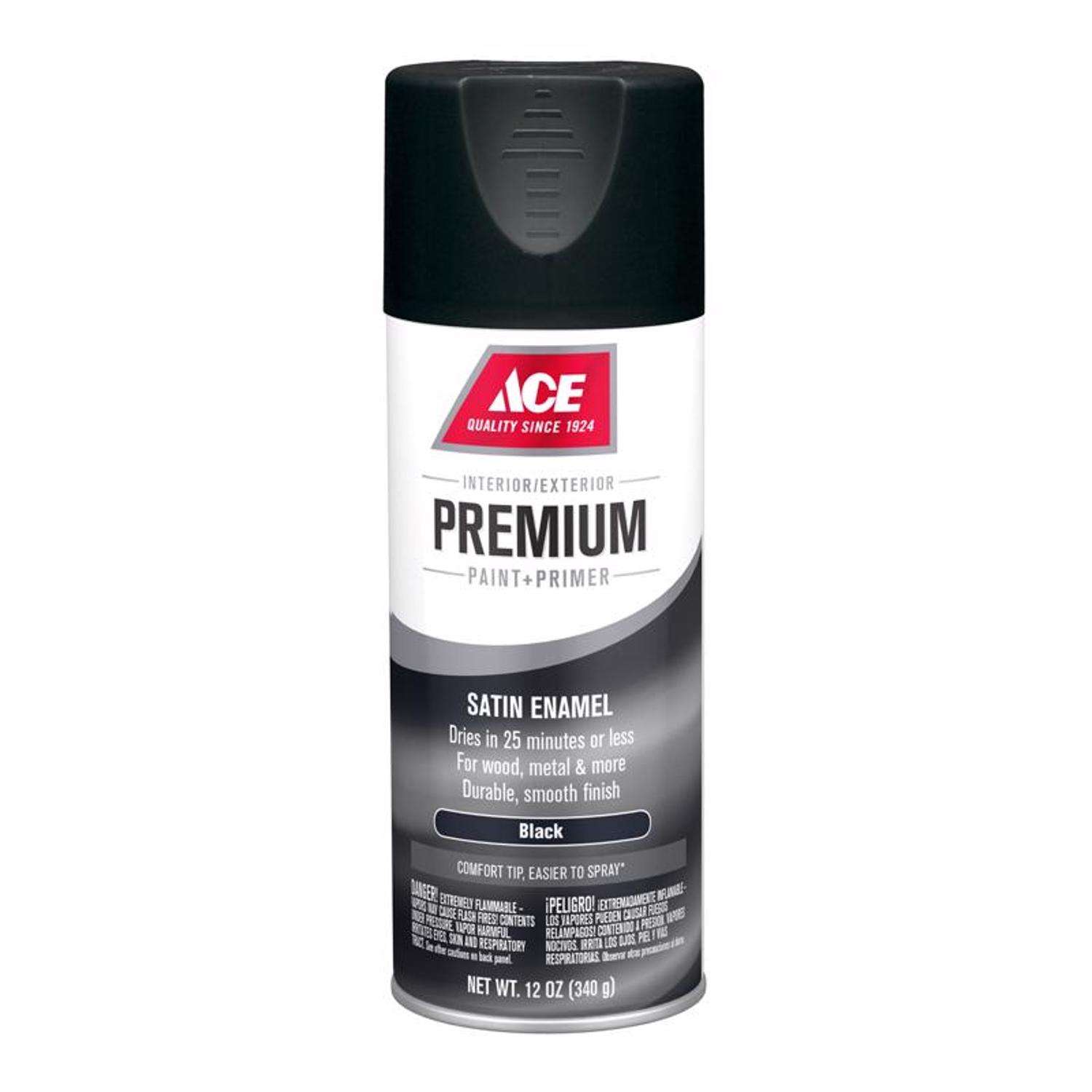 Ace Premium Satin Black Paint + Primer Enamel Spray 12 oz
