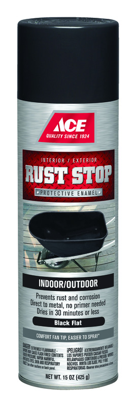 Ace Rust Stop Flat Black Protective Enamel Spray Paint 15 Oz