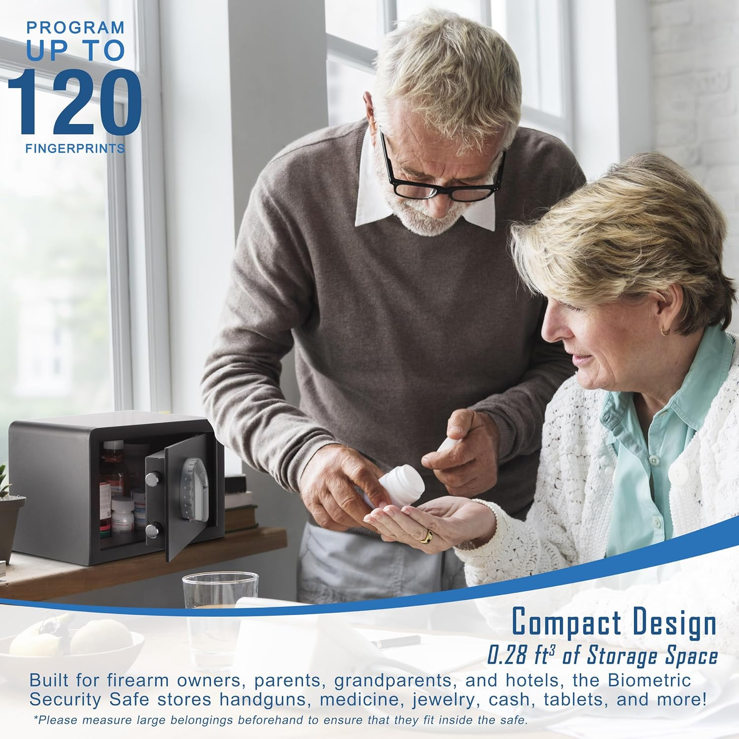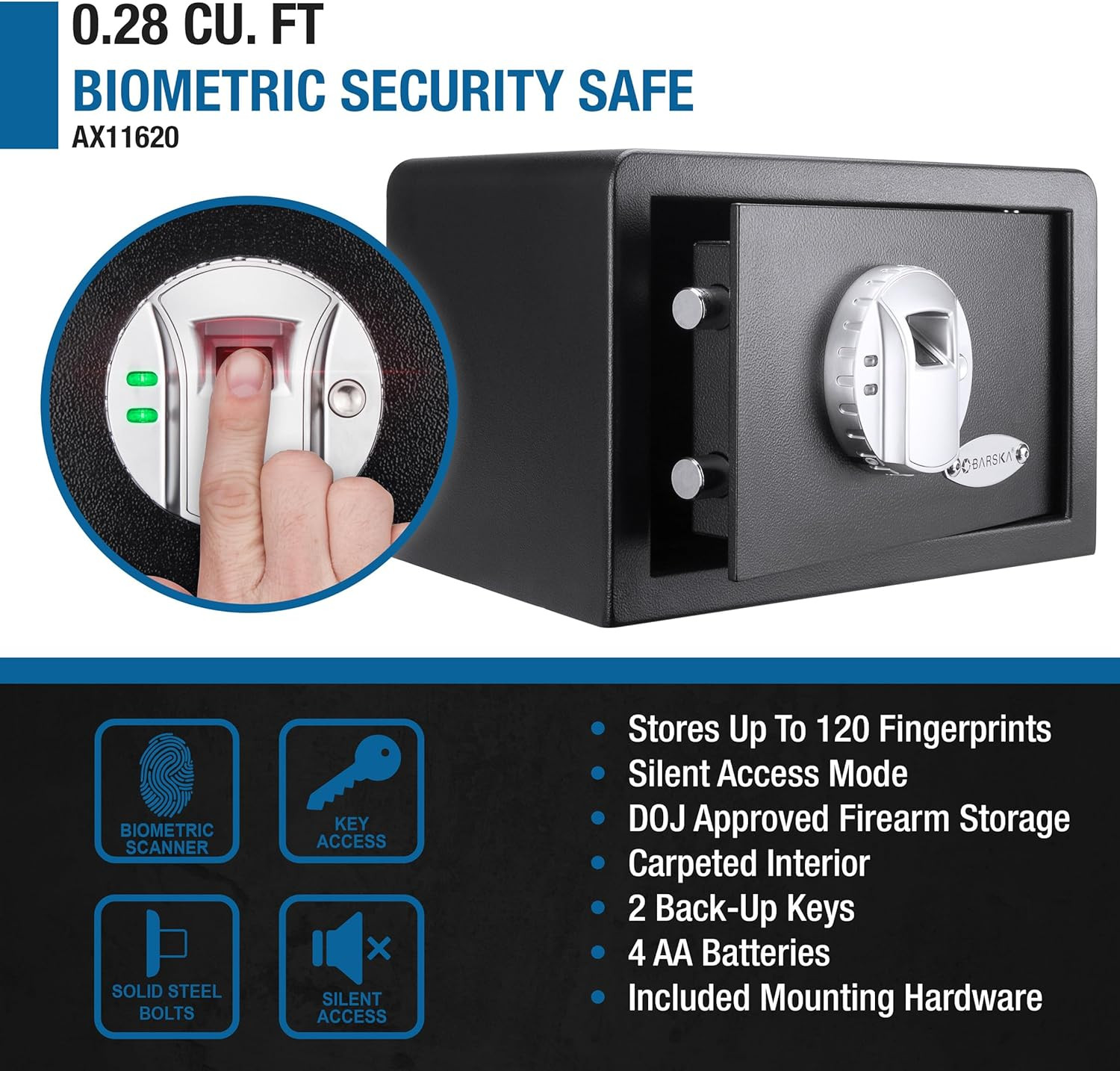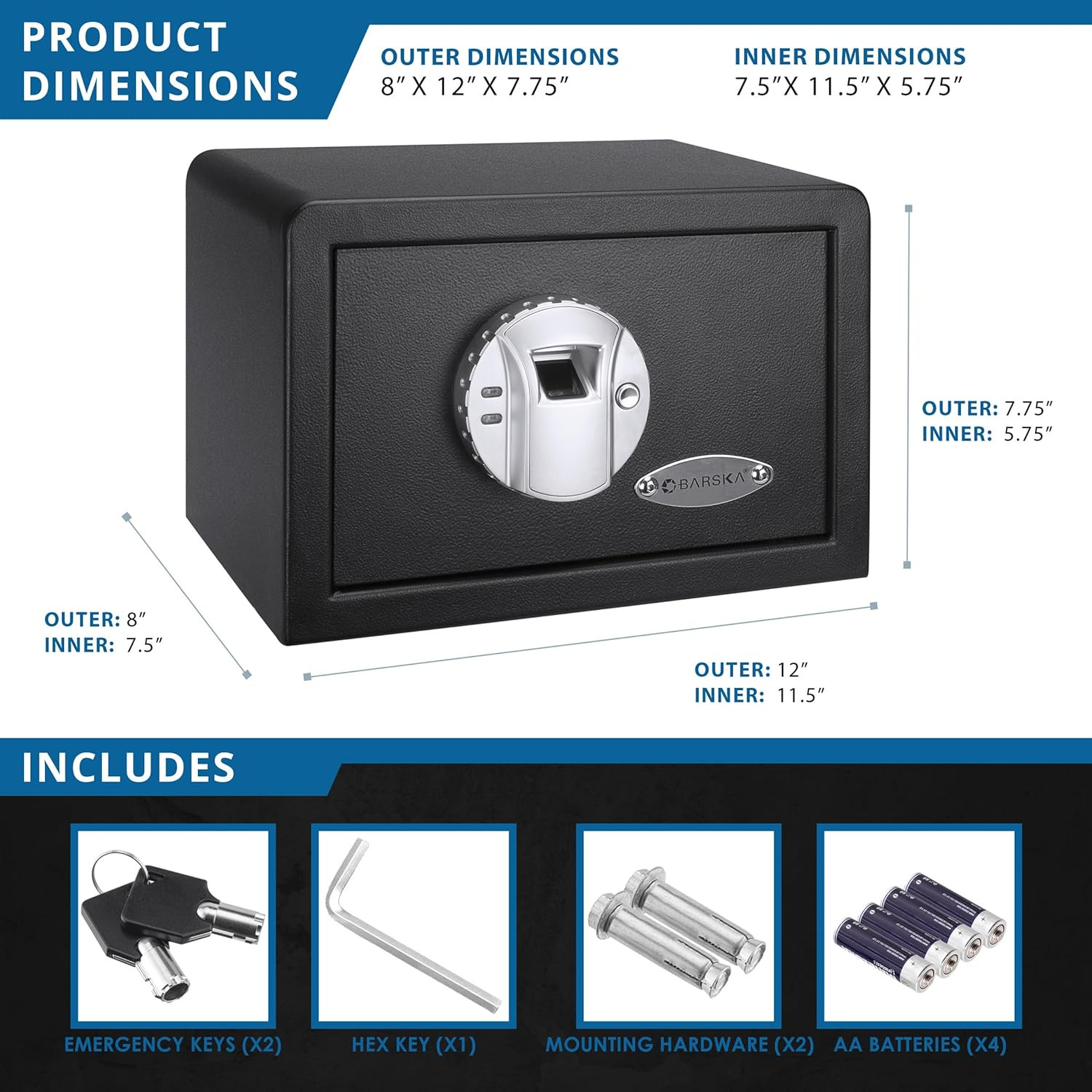 Barska Biometric Fingerprint Mini Security Home Safe Box 0.29 Cubic Ft, Black, 12" x 8" x 7.75"