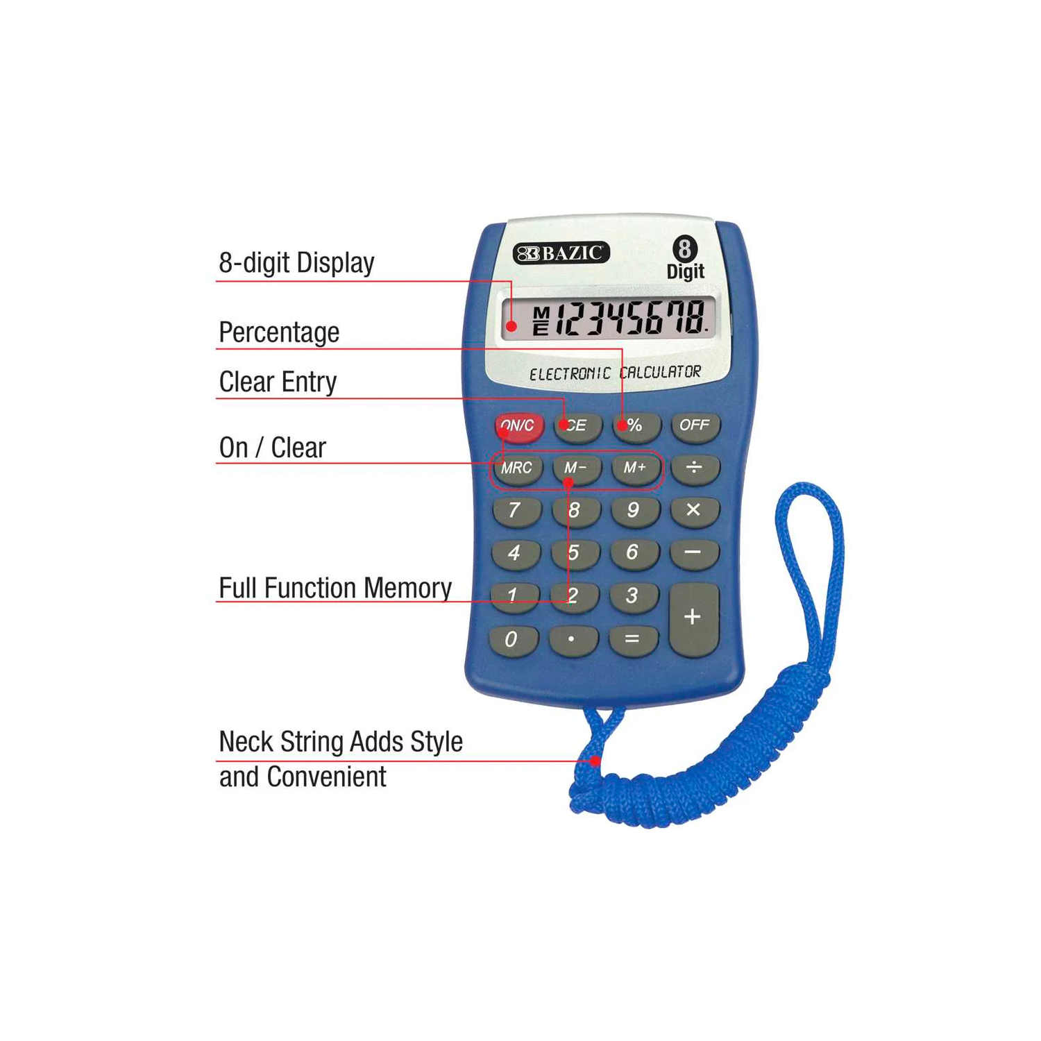 Bazic 8-Digit Pocket Size Calculator W / Neck String