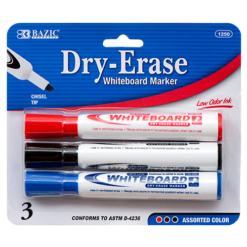 Bazic Assorted Colour Chisel Tip Dry-Erase Markers (3/Pack)