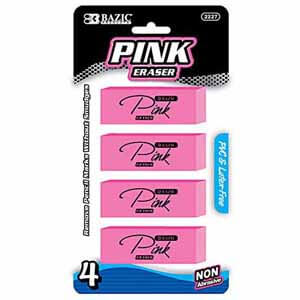 Bazic Bevel Eraser 4 Per Pack, Pink