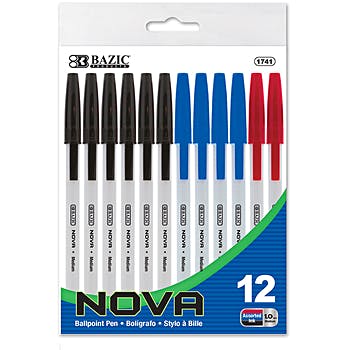 Bazic Nova Assorted Color Stick Pen (12/Pack)