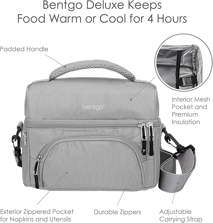 Bentgo Deluxe Lunch Bag Cooler, Gray, 1 gal