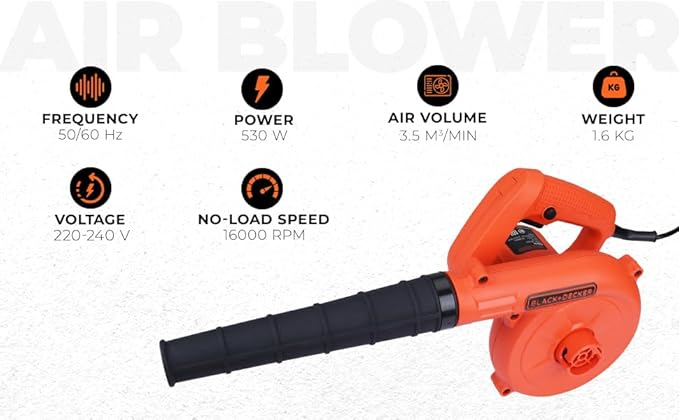 Black & Decker 530W 16,000 Rpm Single Speed Electric Blower/Vacuum With Collection Bag For Home & Garde