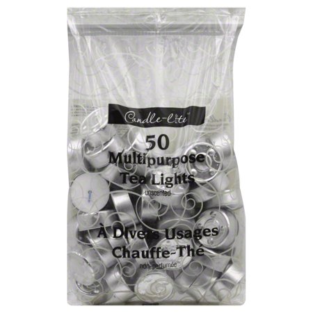 Candle-Lite Everyday Basics Unscented Tea Lights, Pack of 50, Brick, White