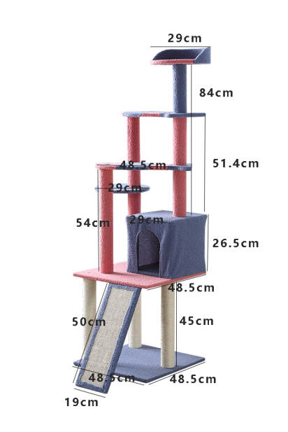 Cat Scratching Post – Blue & Pink, 77 x 71 x 150 cm