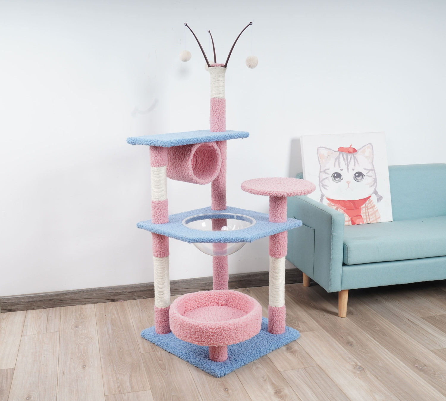 Cat Scratching Post – Pink & Blue, 50 x 50 x 137 cm