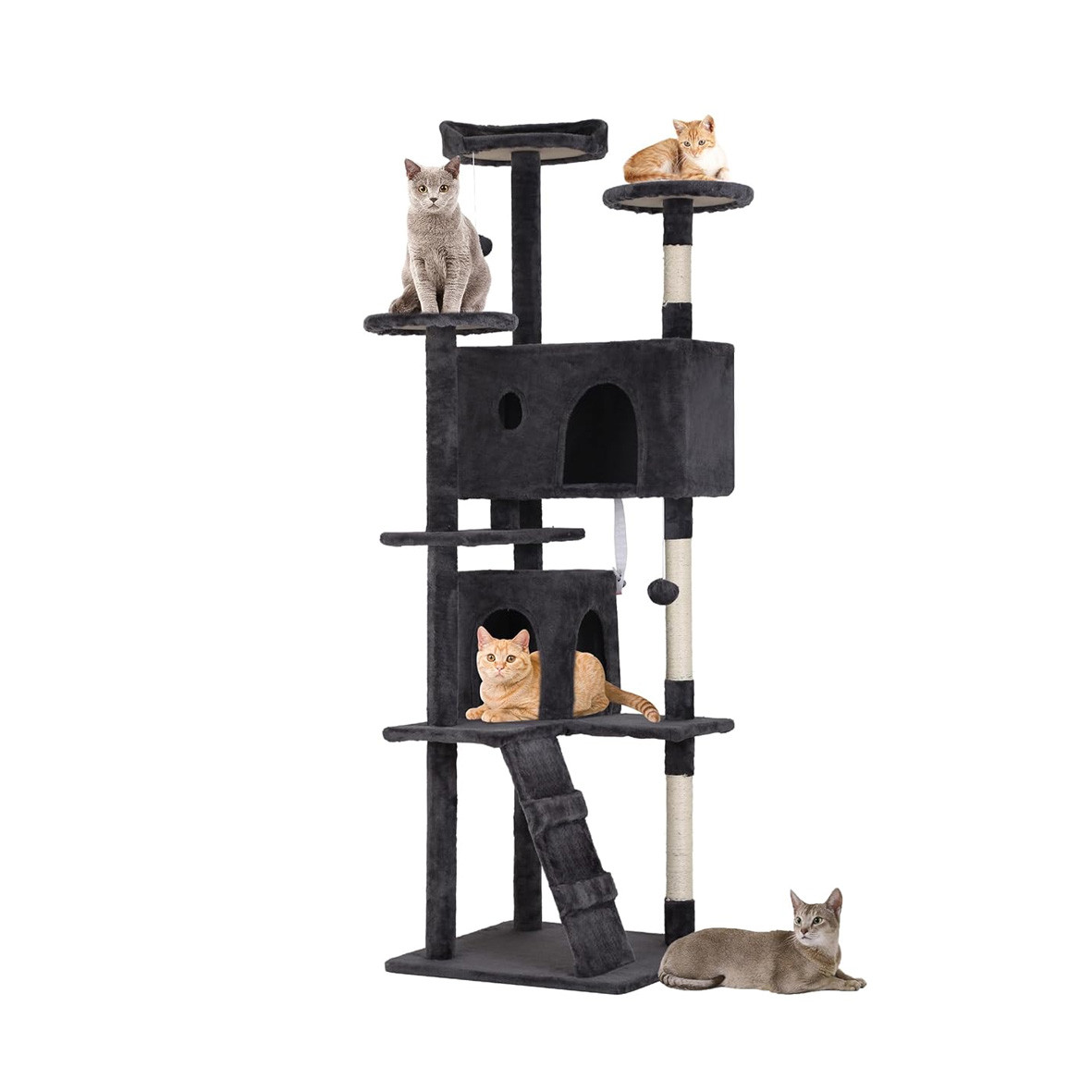 Multifunctional Activity CenterThe cat Tree provides 3 top perches platforms and two cozy condo. Whether your kitten wants to stretch out on a spacious perch, curl up in a plush hole room, or release the urge to scratch on a sisal pole, this multifunctional cat tree tower works perfectly as a recreation paradise,which can make your fur pet's day full of fun and excitement!two toys gives them a unique way and Fun to play!