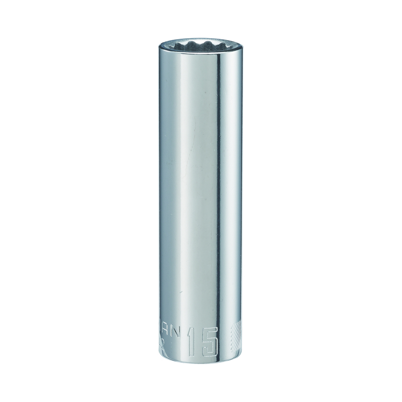 Laser Etched Size Marking Makes It Easy To Locate The Right Socket For The Job. Great For Working In Low-Lit Or Greasy Environments. Permanent Marking Resists Chipping, Fading And Corroding. 12 Point Configuration Allows You To Work In Cramped Areas Where Turning Capacity Is Limited. Slide Right Over Extra Long Hardware Without Having To Adjust Your Grip With Craftsman'S 15 Mm Easy To Read Socket, Deep Depth 1/2 Inch Size Dr. Made From Heat Treated Alloy Steel, This Socket Is Guaranteed Forever.