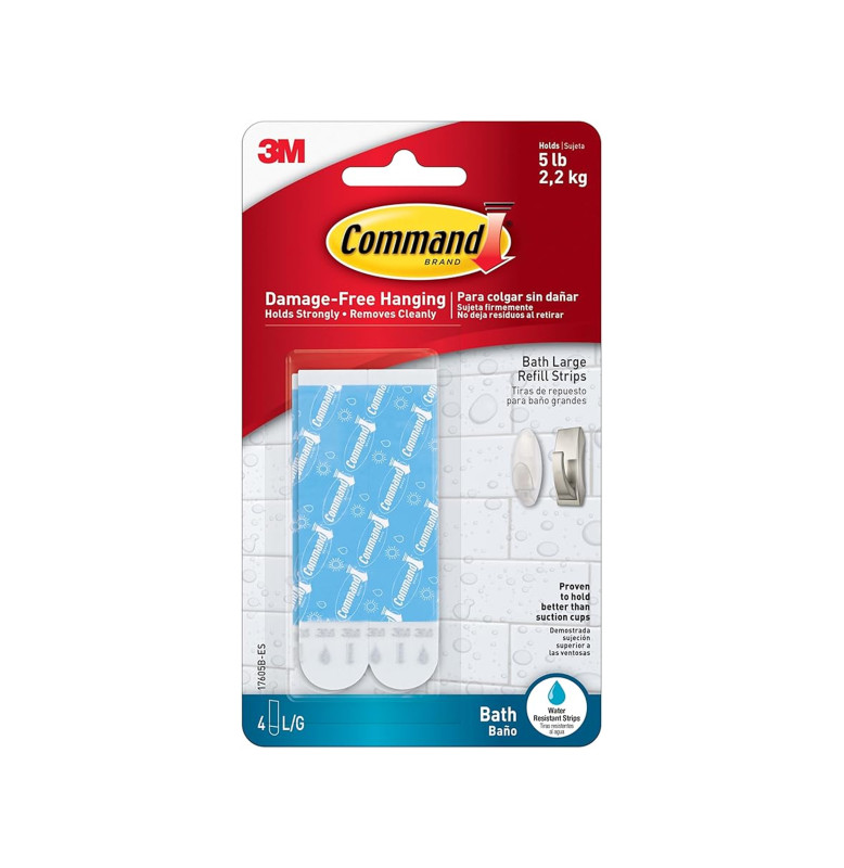 Command Bath Large Water-Resistant Adhesive Refill Strips, 4-Large Strips