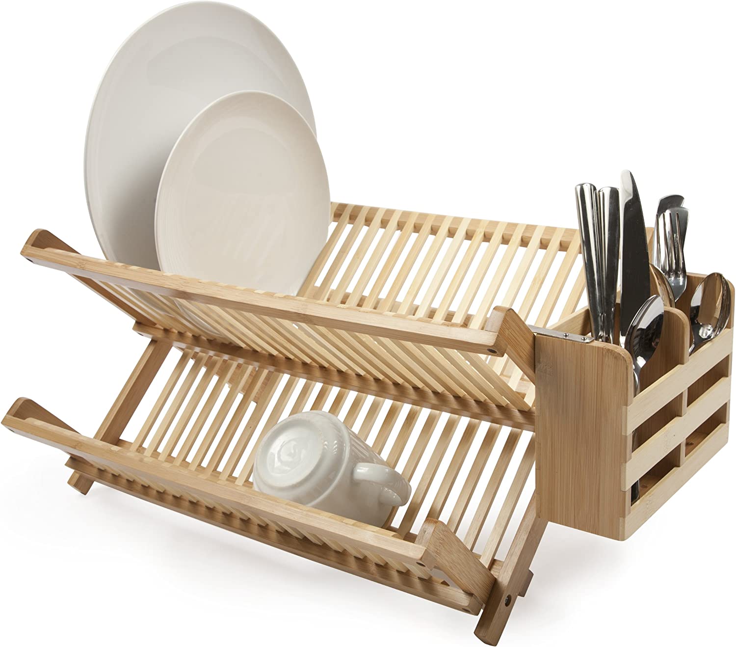 Core Bamboo Dish Rack With Utensil Holder, Natural