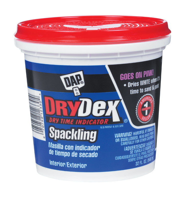 Drydex Spackling, America'S No.1 Seller, Contains A Patented Dry Time Indicator Causing The Product To Change Color When Optimum Dry Time Is Achieved. It Goes On Pink And Turns White. This Unique Feature Is The Signal That It Is Ready To Sand And Paint. Easy To Use Indoors And Out On Drywall, Plaster, Wood And More.