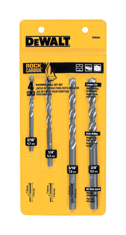 Dewalt 3 In. L Carbide Tipped Percussion Drill Bit Set 4 Pc.