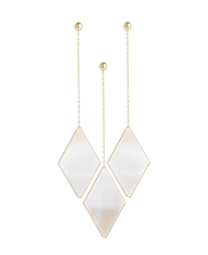 Dima Set Of 3 Matte Brasse Metal Framed Diamond Mirrors Suspended From Knobs And Chains.