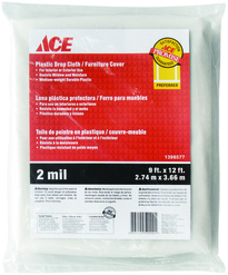 ACE Drop Cloth Furniture Cover, Heavy Duty Plastic, 9 X 12 ft x 2 mil