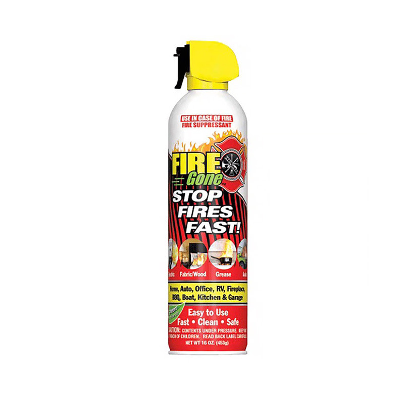 Fire Gone is a fire suppressant packaged in a compact and cleverly designed aerosol can. It delivers a strong targeted stream that goes right to the source of the fire, coating it with specially formulated, fire fighting foam. Easy to use and simple to clean-up. Made from biodegradable materials.