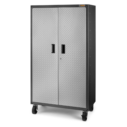 Gladiator Ready-To-Assemble Steel Freestanding Garage Cabinet In Hammered Granite With Casters (36 In. W X 66 In. H X 18 In. D)