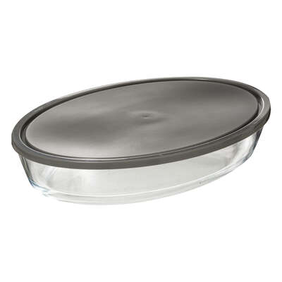 5five Simply Smart KeepEat Oval Glass Dish with Lid, Grey, 35 x 24 cm