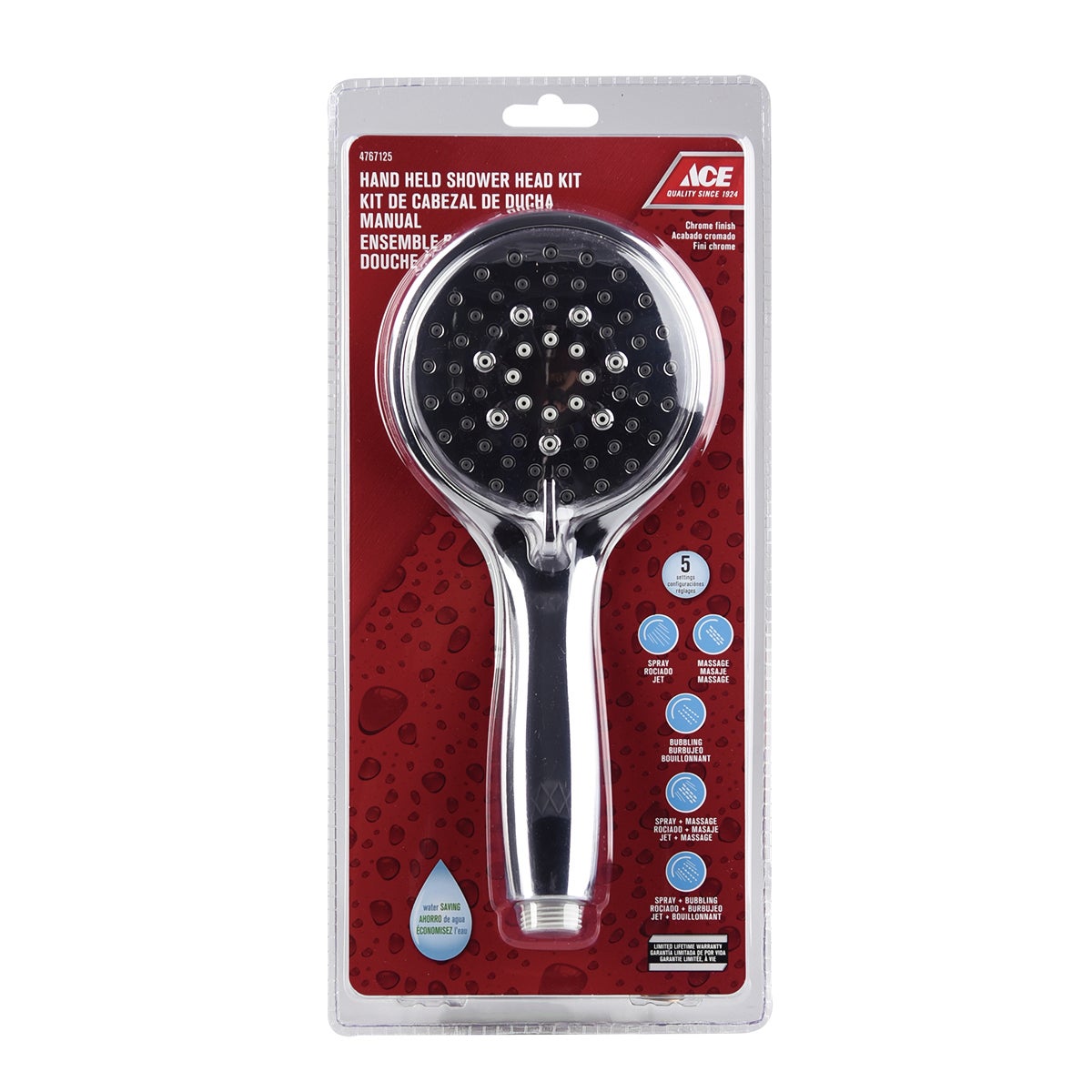 Handheld Showerhead Kit Five Setting Chrome
