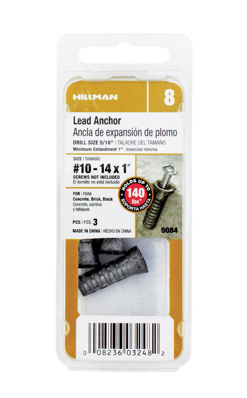 Hillman 1/4 In. D X 1 In. L Lead Round Head Concrete Screw Anchor 3 Pk