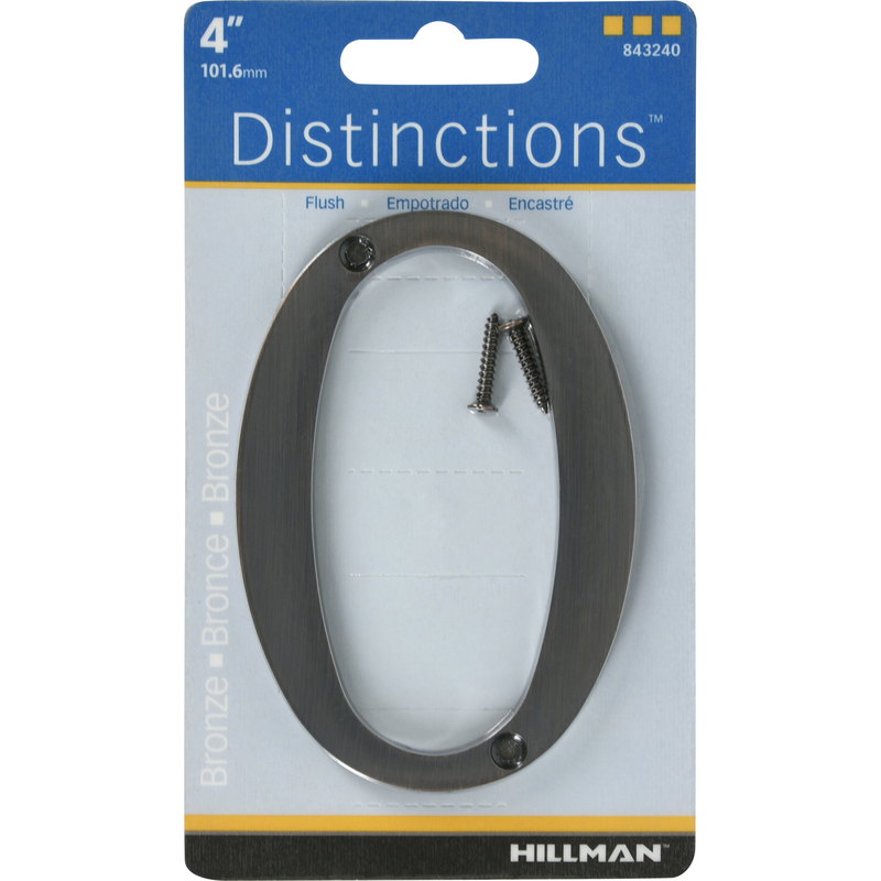 Hillman Distinctions 4 In. Bronze Zinc Die-Cast Screw-On Number 0 1 Pc