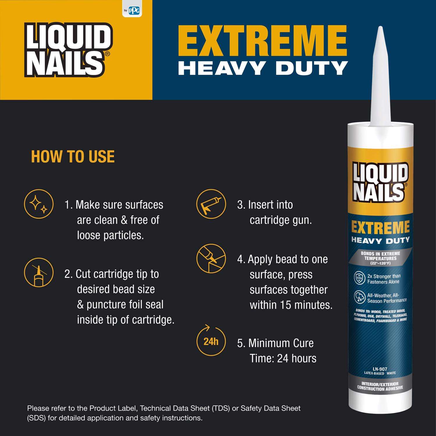 Liquid Nails Extreme Heavy Duty Acrylic Latex Construction Adhesive 10 Oz