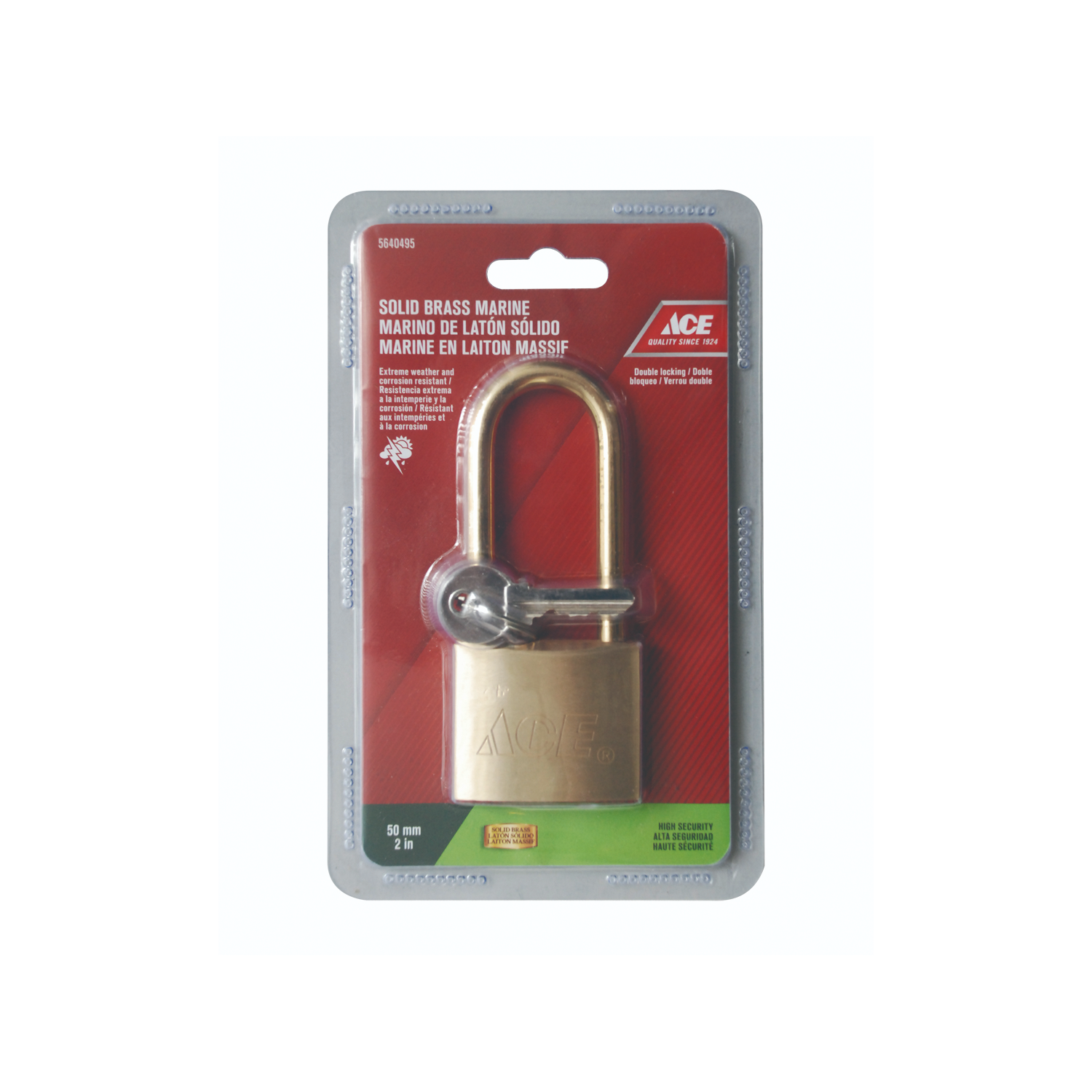 Marine Long Shackle Padlock 50Mm (2In) Brass Ace
