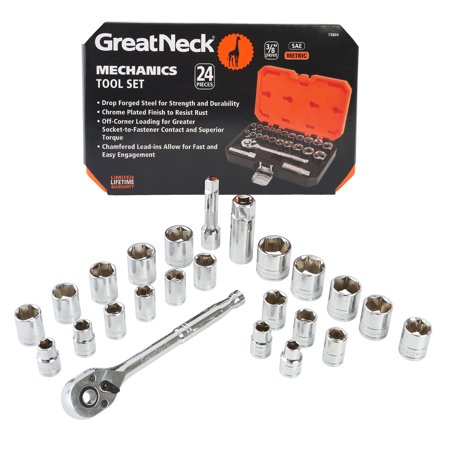 The Mechanic Tool Set 24-Piece is a versatile and practical toolkit designed for professionals, hobbyists, and DIY enthusiasts who require reliable tools for a variety of mechanical and repair tasks. This 24-piece set includes essential hand tools such as wrenches, sockets, ratchets, screwdrivers, and other accessories, providing everything needed for automotive repairs, home maintenance, and general mechanical work. Each tool is crafted from high-quality, durable materials to ensure long-lasting performance, strength, and resistance to wear. The set is organized in a compact, sturdy case that keeps all tools neatly arranged, making it easy to find the right tool when needed and convenient for storage or transport. The ergonomic designs of the tools offer comfort during extended use, reducing hand fatigue and enhancing precision. Ideal for both professional mechanics and DIY enthusiasts, this 24-piece set delivers versatility, reliability, and efficiency in a single package. Whether assembling, repairing, or maintaining equipment, the Mechanic Tool Set 24-Piece ensures that users have the right tool for every job. Lightweight yet robust, it provides a dependable solution for tackling a wide range of mechanical, automotive, and household projects with ease and confidence. A practical, high-quality toolkit that combines functionality, portability, and durability for everyday use.