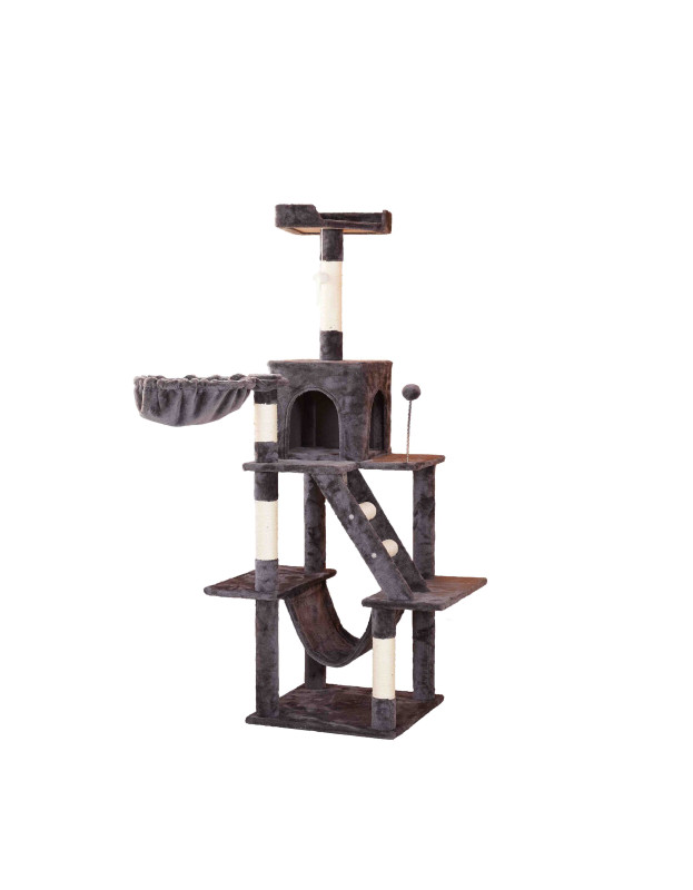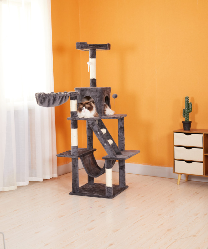 Multi-Level Cat Condo and Scratching Post for Indoor Cats – Dark Gray, 50 x 50 x 158 cm
