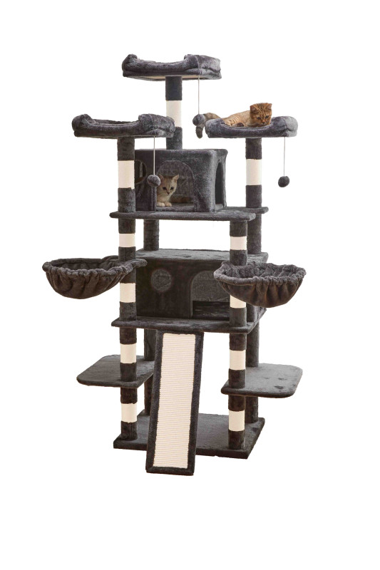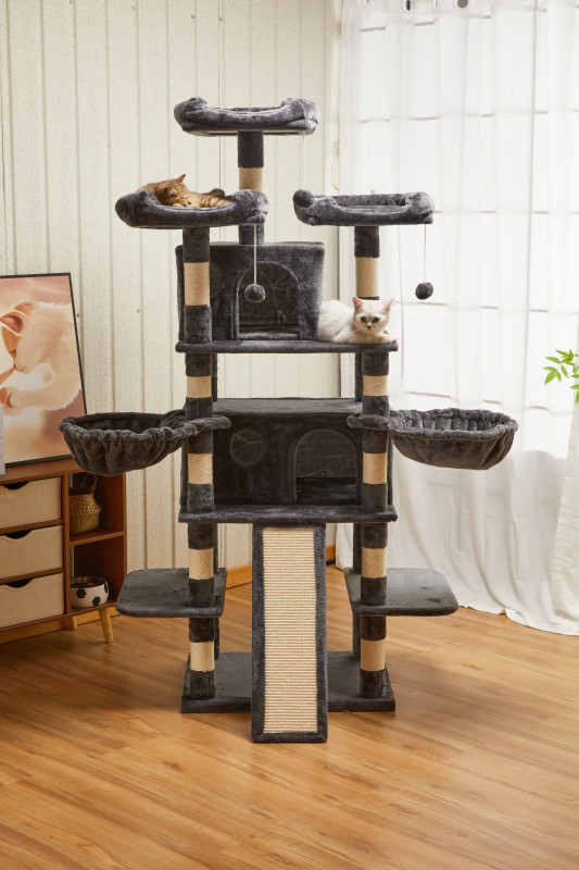 Multi-Level Cat Condo and Scratching Post for Indoor Cats – Dark Gray, 60 x 50 x 172 cm