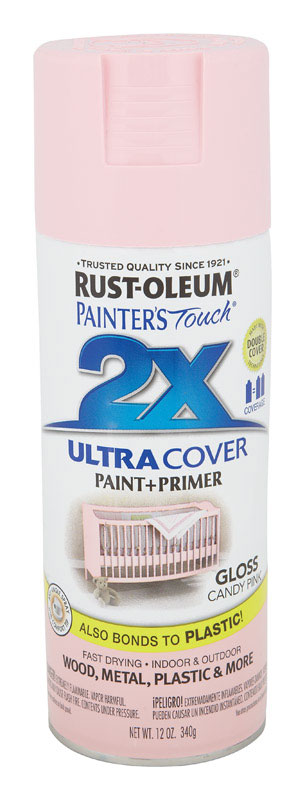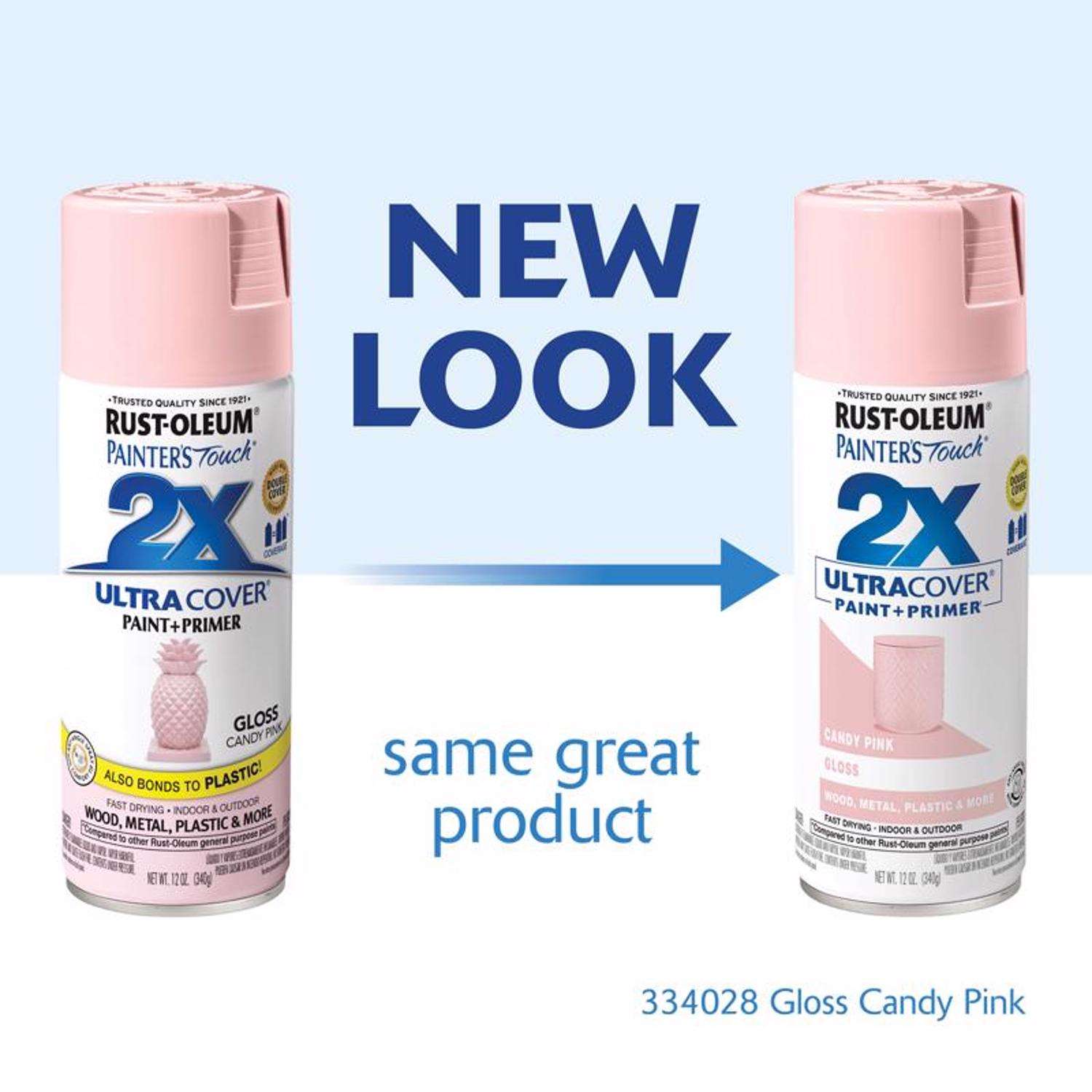 Rust-Oleum Painter'S Touch 2X Ultra Cover Gloss Candy Pink Paint+Primer Spray Paint 12 Oz