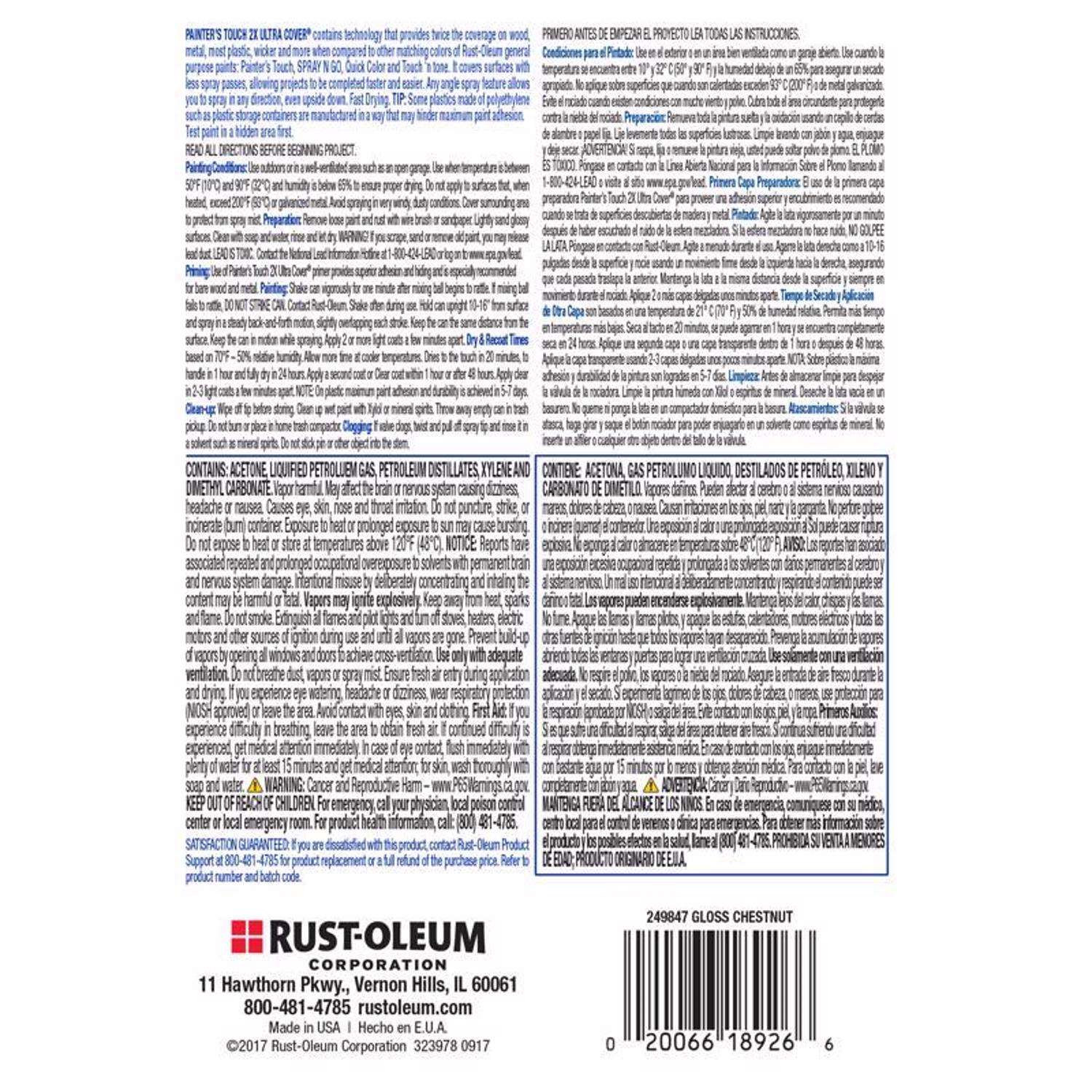 Rust-Oleum Painter'S Touch 2X Ultra Cover Gloss Chestnut Paint+Primer Spray Paint 12 Oz