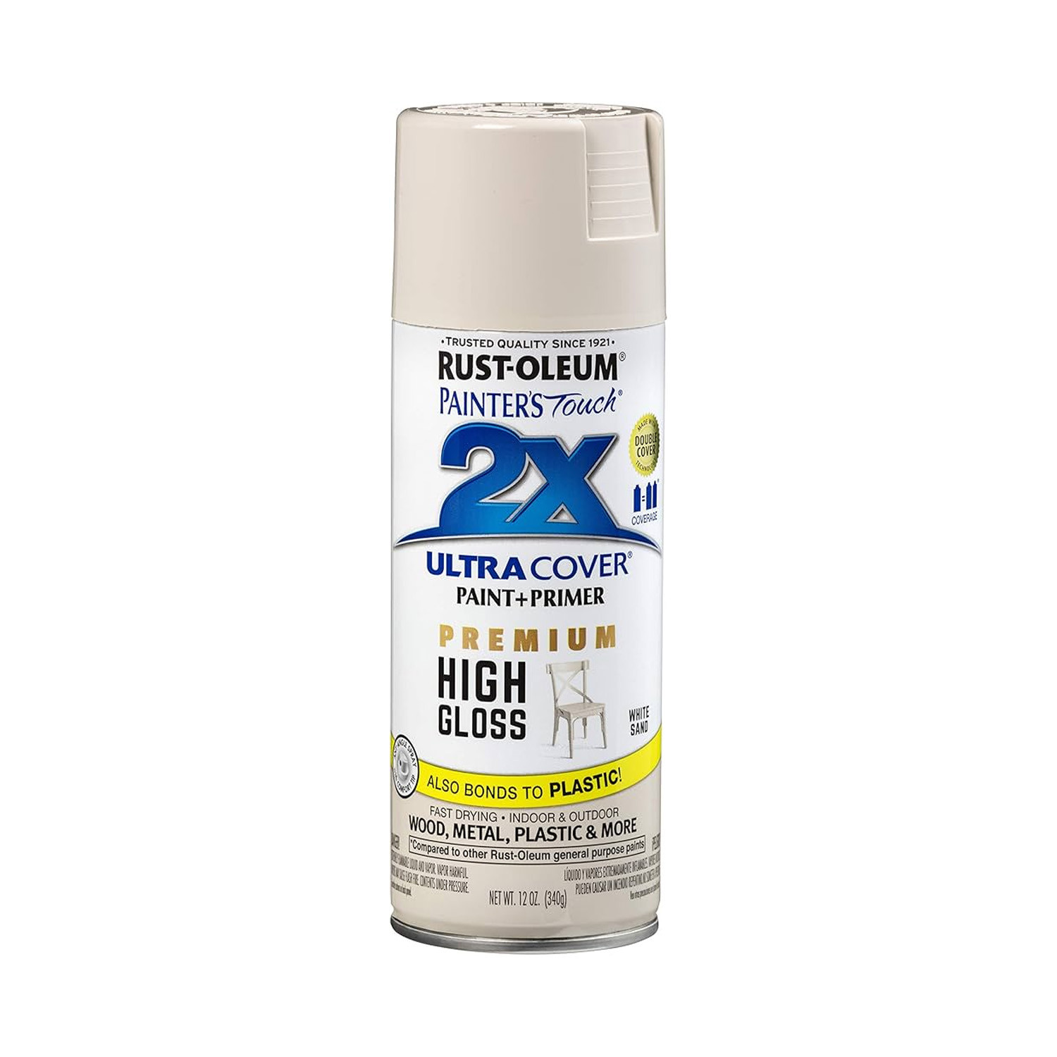 Rust-Oleum Painter'S Touch 2X Ultra Cover High-Gloss White Sand Paint+Primer Spray Paint 12 Oz