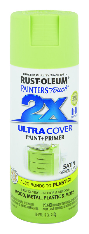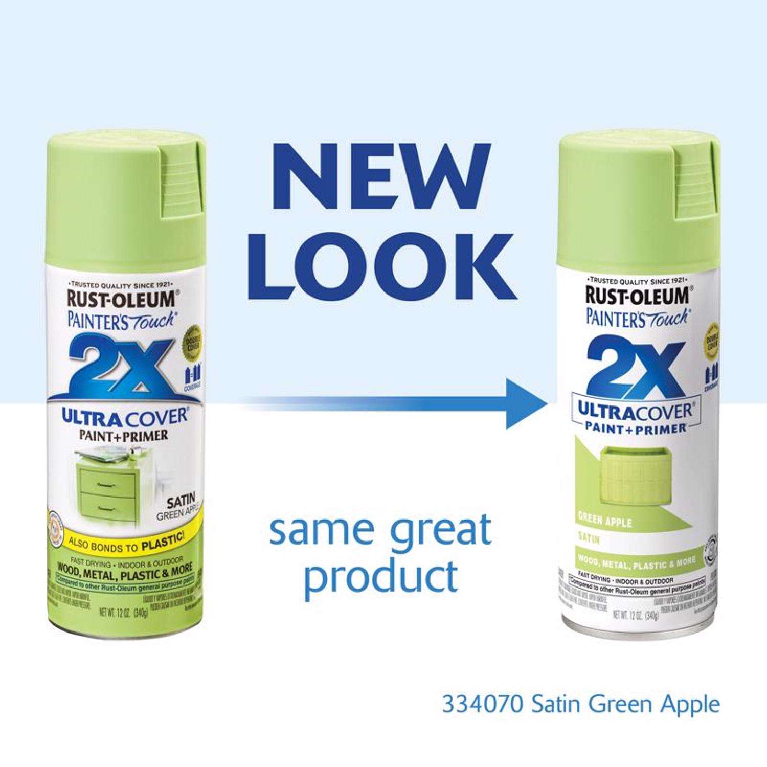 Rust-Oleum Painter'S Touch 2X Ultra Cover Satin Green Apple Paint+Primer Spray Paint 12 Oz