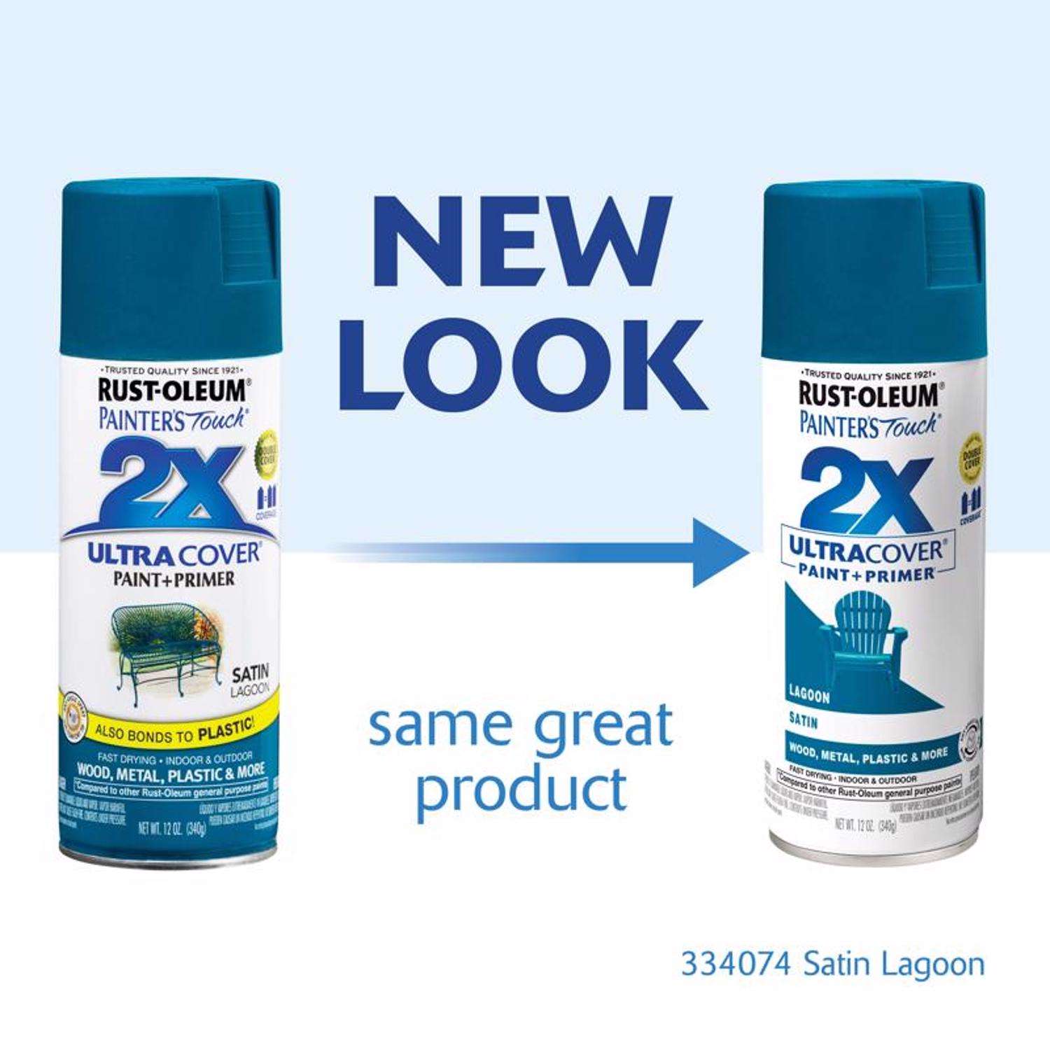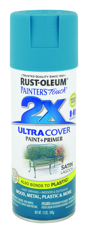 Rust-Oleum Painter'S Touch 2X Ultra Cover Satin Lagoon Paint+Primer Spray Paint 12 Oz