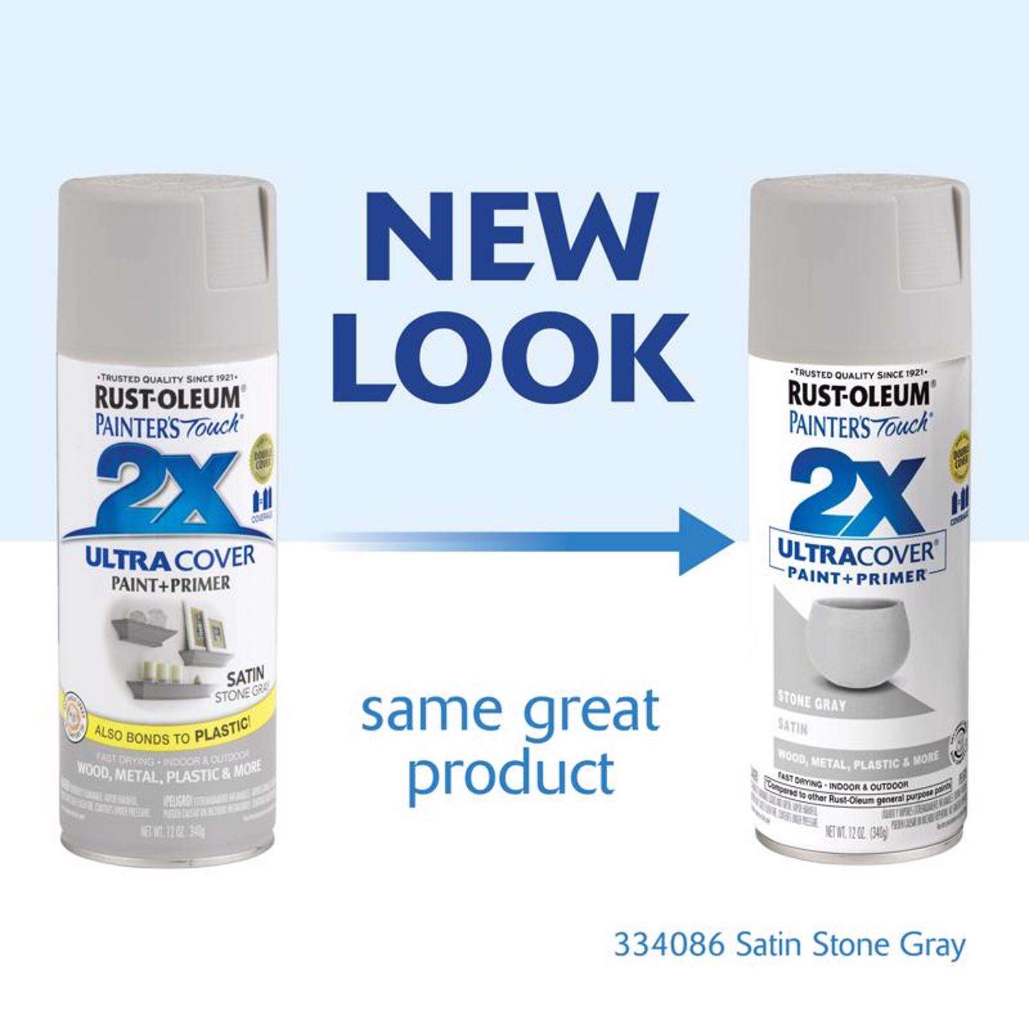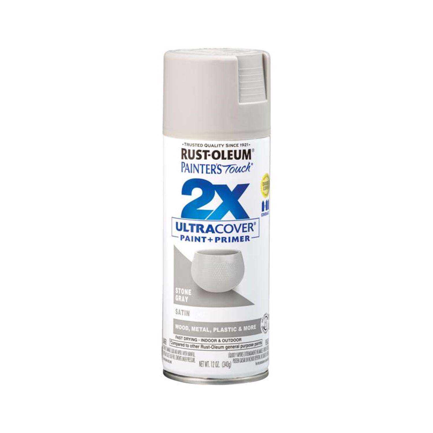 Rust-Oleum Painter'S Touch 2X Ultra Cover Satin Stone Gray Paint+Primer Spray Paint 12 Oz
