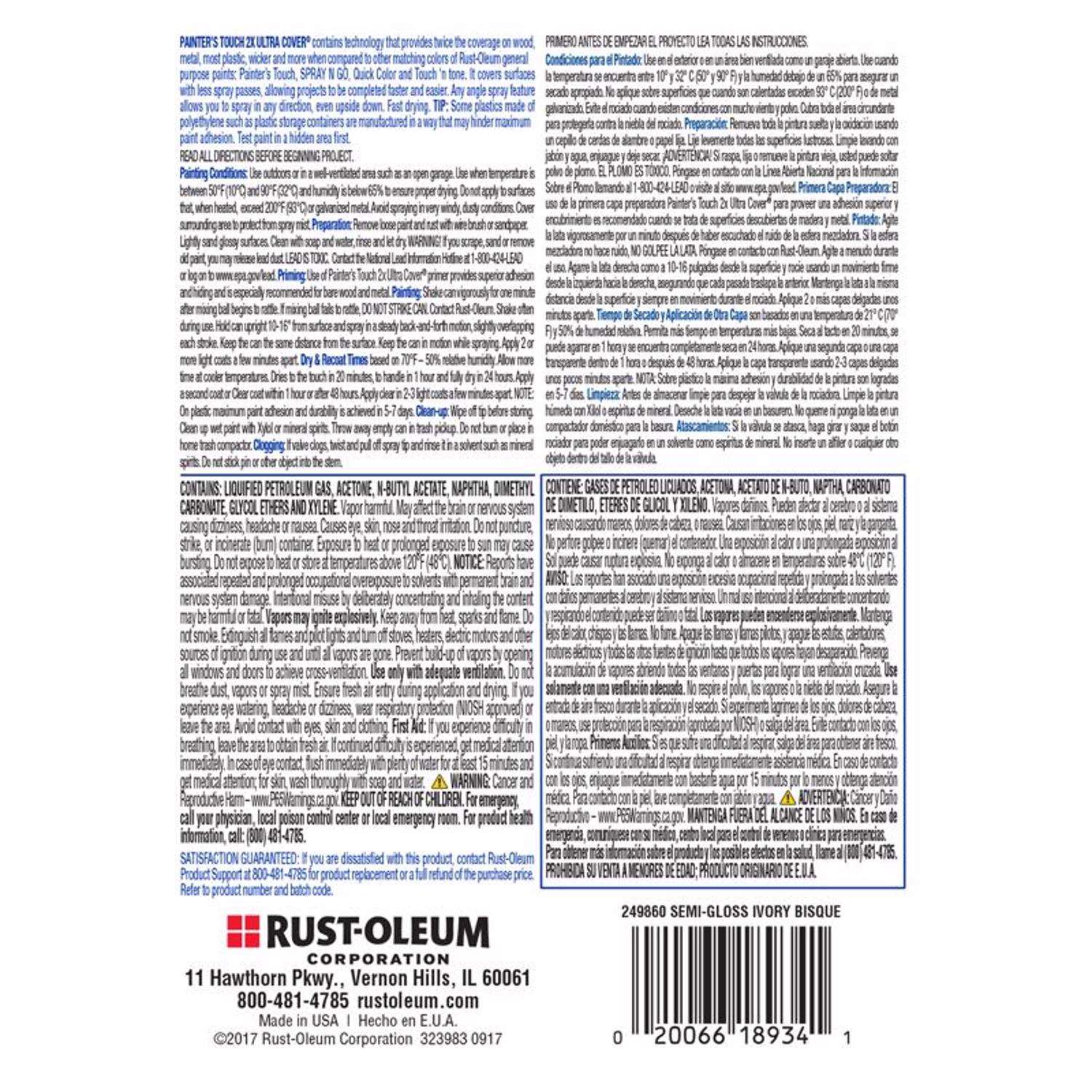 Rust-Oleum Painter'S Touch 2X Ultra Cover Semi-Gloss Ivory Bisque Spray Paint 12 Oz