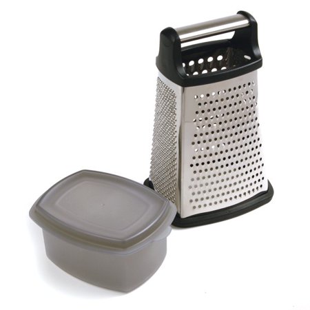 Four-Sided Grater & Catcher. One Tool, Four Ways To Prepare! Choose From Fine, Medium Or Coarse Grating, Or Easily Slice Foods. A Nonslip Rubber Base Keeps The Grater In Place, While The Catcher And Lid Make It Easy To Store Prepped Ingredients. Includes Grater, Catcher And Lid6.5'' W X 10'' H X 5'' Dgrater Holds 10 Cupscatcher Holds 3 Cupsstainless Steel / Rubberhand Washimported.