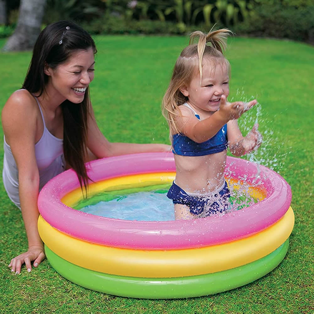 In summary, the Sunset Glow Pool, 3-Ring is a safe, durable, and visually appealing inflatable pool that combines fun and practicality. Its three-ring design, high-quality materials, and bright sunset colors make it ideal for young children to enjoy hours of safe and refreshing water play.