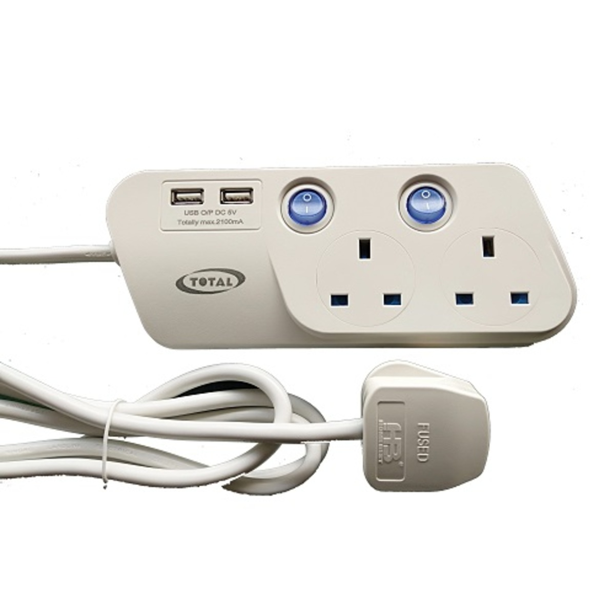 TOTAL EXTENSION 2BS OUTLETS INDV. SWITCH 2M CORD WITH 2USB